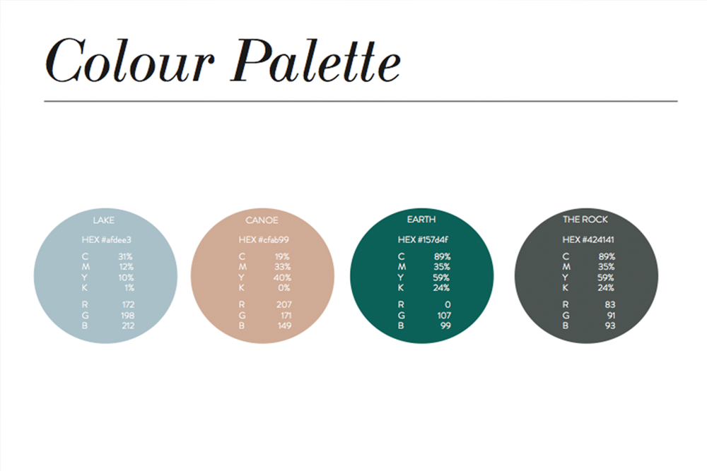 Since Ark & Paddle’s brand identity pays tribute to the land, the brand colour palette needed to evoke the same spirit. Dark green and grey contrast a muted brown and blue to make up the A&P brand palette.